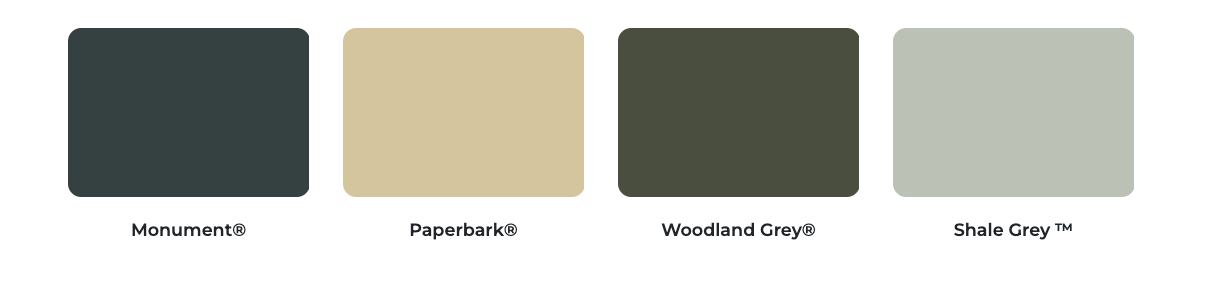 The Colorbond® tint choices are Monument® and Shale Grey™ from the contemporary range, and classic colours Paperbark® and Woodland Grey®.